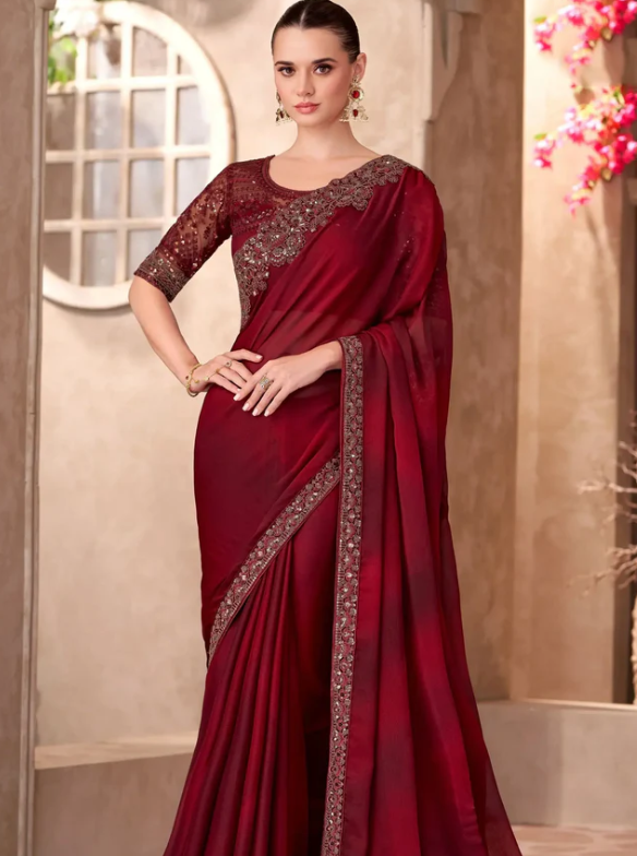 These sarees often feature delicate embroidery, sequins, or beadwork, making them ideal for wedding ceremonies. Pairing the right blouse and accessories can transform a simple saree into a show-stopping ensemble.